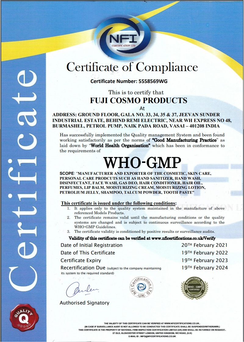 In order to maintain and enhance our high quality standard, we are certified according to ISO 9001, WHO Certificate, FDA Certificate, Pharma License